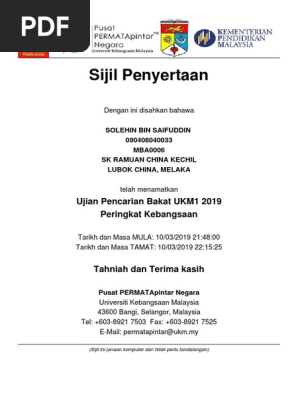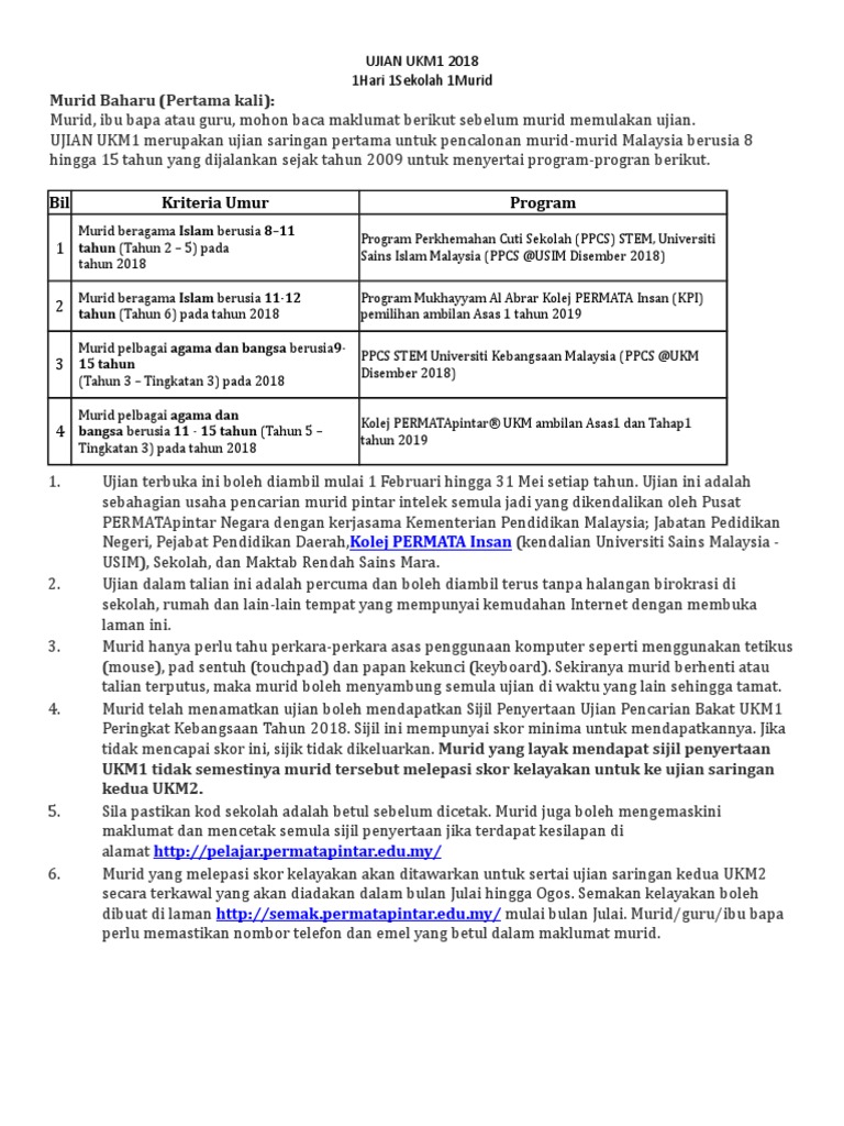 Asalkan ada laptop dan line internet. Pada tahun lepas 51 000 orang lebih berjaya menyertai ujian ini dan negeri paling ramai penyertaannya. Sehubungan dengan itu, semua murid. Ujian ukm1 permata pintar 2019. Apabila rasa dah tak larat nak fikir.